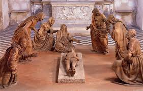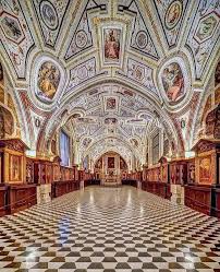All’interno si conservano opere di grande rilievo, come il Compianto sul Cristo morto di Guido Mazzoni, un gruppo scultoreo in terracotta che colpisce per l’intensità dei volti e la partecipazione emotiva delle figure, e la Sagrestia affrescata da Giorgio Vasari, dove la ricchezza decorativa e il rigore compositivo riflettono pienamente la cultura artistica del tempo. È un luogo che invita a guardare verso l’alto, verso ciò che è ordinato, visibile, compiuto.