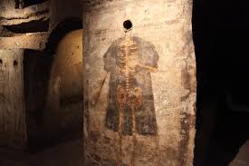 Le teste dei cadaveri venivano invece incastonate nel muro e per i ceti più abbienti ( quelli disposti a pagar più danaro )sotto ad esso , si dipingeva un corpo che desse qualche indicazione sul mestiere del defunto,