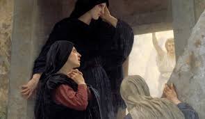 Esse si erano recate presso il sepolto dove era era stato deposto gesù portando olii aromatici per imbalsamare il suo corpo ma trovarono il grande masso che chiudeva l’entrata spostato.