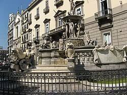 Danneggiata durante le rivolte del 1647-48, la fontana fu restaurata negli anni successivi e subì ulteriori perdite e manomissioni nel corso del XVII secolo. Interventi di manutenzione e sostituzione di parti mancanti si susseguirono tra Settecento e Ottocento. Nel 1886 l’opera venne smontata e temporaneamente depositata sotto la collina di Pizzofalcone, in attesa di una nuova collocazione. Dopo un lungo dibattito, nel 1904 fu ricostruita in piazza Agostino Depretis, con un restauro curato da Raffaele Belliazzi che ne modificò parzialmente le proporzioni per esigenze prospettiche.
