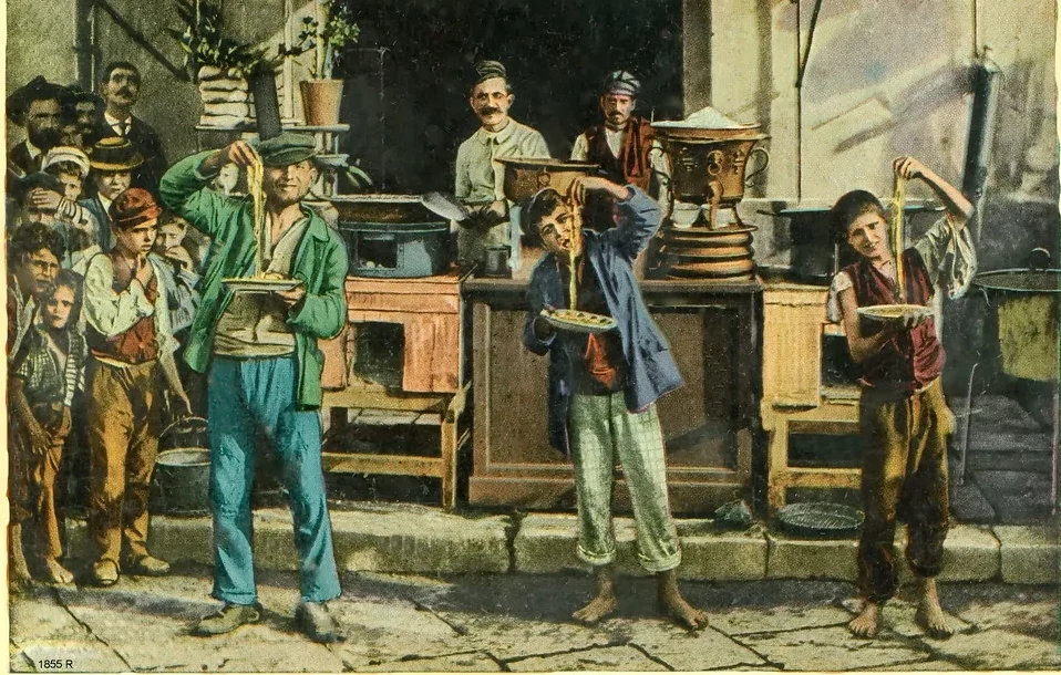 Re Ferdinando I , che spesso amava mischiarsi con il popolo , adorava mangiare come loro i maccheroni con le mani tanto da essere chiamato dal popolo ” Tata Maccherone ” ed invece da coloro che criticavano tale suo comportamento ” Re Lazzarone “.