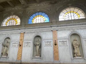 CURIOSITA :A Villa Doria d’Angri fu ospitato nel 1880 per ben per 8 mesi anche il grande musicista Richard Wagner che arrivò a Napoli con il treno reale di Ludovico di Baviera. In questo lungo periodo il compositore completò il PARSIFAL e scrisse il libro autobiografico “La mia vita”. Sempre nella villa il grande Joseph Rubinstein eseguì in anteprima al pianoforte la musica che accompagna la metamorfosi scenica del I atto del Parsifal: da allora la sala dove soggiornò Wagner è stata denominata “sala Wagner”.