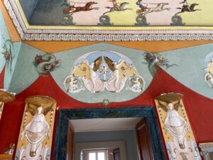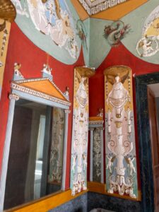 Un’ampia terrazza che circonda l’intera struttura , aveva nella parte laterali dei giardini pensili con giochi d’acqua e fontane, mentre esternamente vi erano dei meravigliosi giardini di Delizie ricchi di fiori e piante di elevato pregio. Gli spazi interni lavorati da Guglielmo Bechi, erano ricchi di originali decorazioni a motivi pompeiani, ma anche degli specchi, maioliche, stucchi, ecc…
