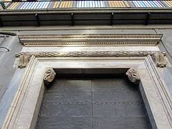 Il palazzo de Sangro Sansevero mostra un monumentale portale con un imponente stemma in marmo . Esso costruito nella XVI secolo fu restaurato dal principe Raimondo de Sangro nella prima metà del XVIII secolo.