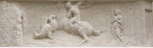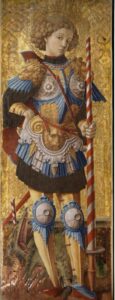 Ma San Giorgio è soprattutto il patrono dell’Inghilterra è perché la sua bandiera era stata assegnata agli inglesi dal papa proprio durante le crociate: fu infatti il re guerriero Riccardo Cuor di Leone (1157-1199) il primo a invocare il santo soldato come protettore di tutti i combattenti; nel 1277 il suo vessillo divenne la bandiera ufficiale del Regno d’Inghilterra e nel 1348 re Edoardo III istituì come tutti sappiamo, il celebre grido di battaglia “Saint George for England” istituendo l’Ordine dei Cavalieri di San Giorgio o della Giarrettiera.