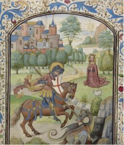 In tutto il Medioevo la figura di s. Giorgio, il cui nome aveva tutt’altro significato, cioè ‘agricoltore’, divenne oggetto di una letteratura epica che gareggiava con i cicli bretone e carolingio.