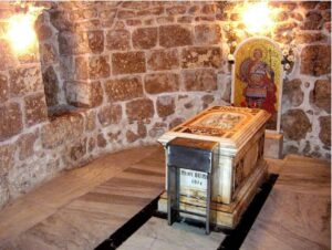 La figura di San Giorgio è infatti , nonostante tutto avvolta ancora nel mistero: da secoli gli studiosi cercano di stabilire chi veramente egli fosse, quando e dove sia vissuto; le poche notizie pervenute, arrestano che a Lydda ( oggi Lod ) presso Teal Aviv , vi era una basilica costantiniana , sorta sulla tomba di San Giorgio e compagni , martirizzati verosimilmente nel 303 , durante la persecuzione di Diocleziano ( detta basilica era già meta di pellegrini prima delle Crociate, fino a quando il sultano Saladino (1138-1193) la fece abbattere).