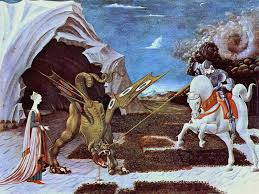 Il culto di San Giorgio, come potete notare è antichissimo (pare risalire addirittura al IV secolo) e nella tradizione popolare egli con il passare del tempo viene sempre più raffigurato come il cavaliere che affronta il drago, simbolo della fede intrepida che trionfa sulla forza del maligno.