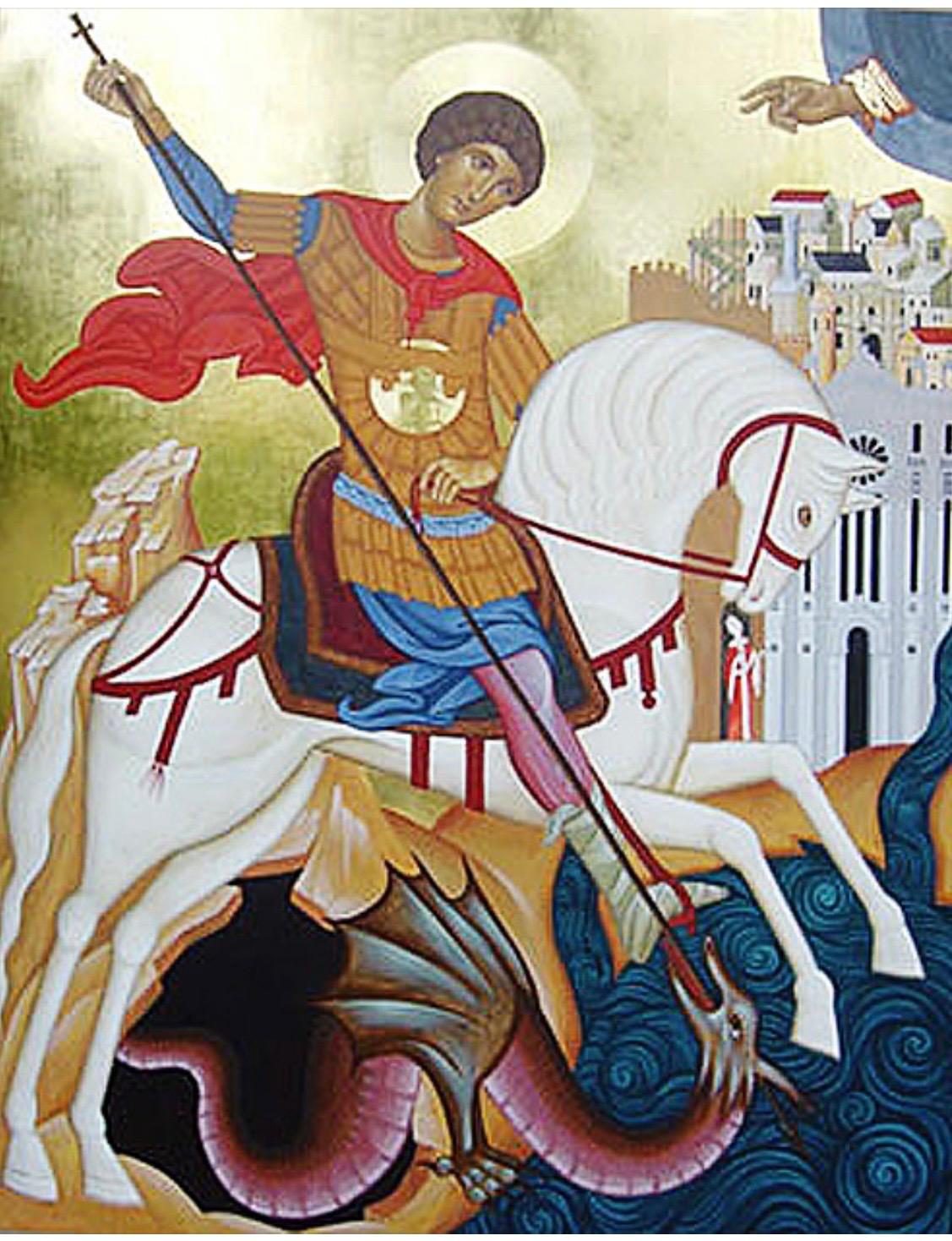 Ha salvato una principessa, ucciso un drago, convertito intere armate alla vera fede, guidato popoli, protetto nazioni, unito oriente e occidente, nord e sud e al tempo stesso istigato nazionalismi e fatto del suo simbolo la bandiera di grandi potenze.
