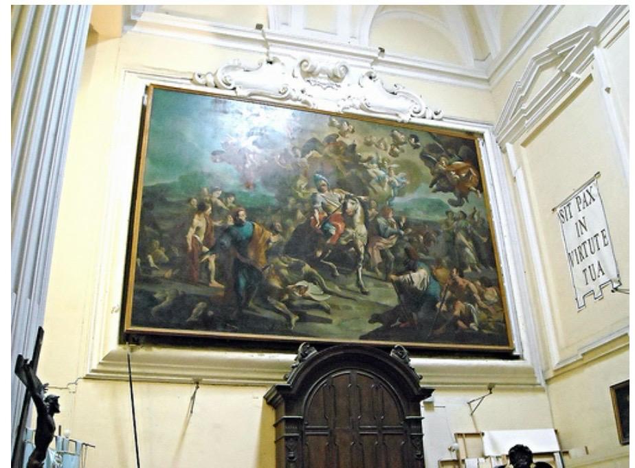 Entrambi giganteschi si fronteggiano e sono opera dello stesso pittore proveniente dalla scuola di Solimena .