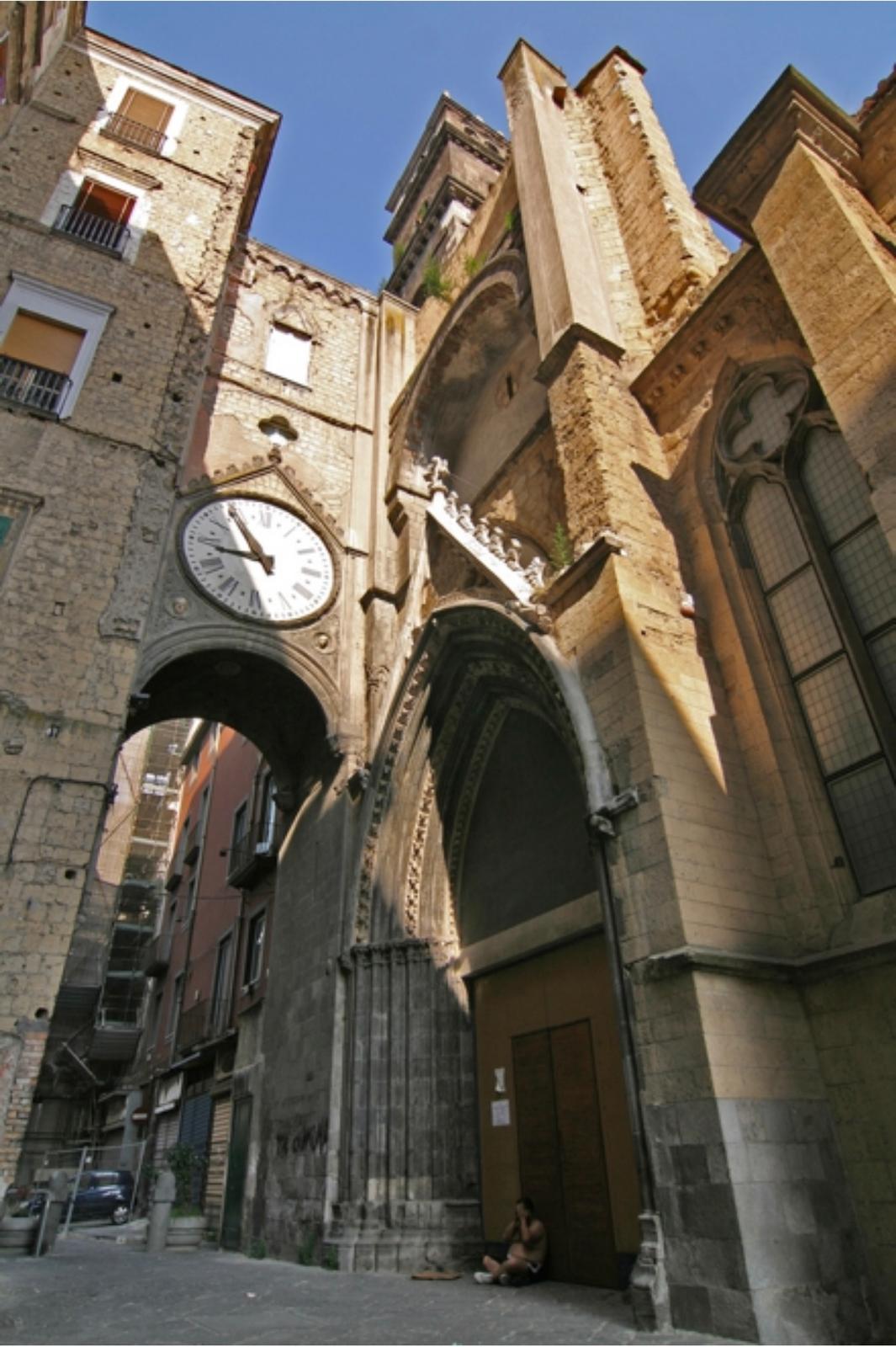 Essa fu edificata nella seconda metà del 200 dagli Angioini che come tutti sappiamo costruirono molte chiese in città, con l’intento di ringraziare il papato per l’appoggio dato nella conquista del Regno di Napoli; ma questa è probabilmente la prima chiesa gotica napoletana voluta dalla casa d’Anjou; san Lorenzo maggiore infatti, la chiesa che è in piazza san Gaetano, e di pochi anni posteriore. E la cosa bella è che questa chiesa è rimasta gotica come fu progettata all’inizio, una delle poche a non essere “barocchizzata”, ovvero rifatta in stile barocco, come è avvenuto nel 600 per quasi tutte le chiese della città.