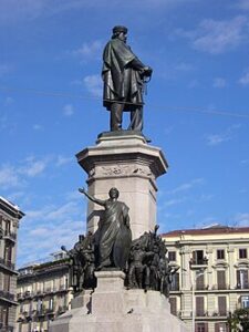Nel 1904 accadde poi che in piazza venne inaugurato un nuovo gruppo scultoreo a Giuseppe Garibaldi, eseguito da Cesare Zocchi’. Un monumento imponente, affollato di nuove figure femminili simboliche tra le quali, l’Italia e una nuova giovane, austera Partenope Liberata – anche dalla coda – ma con lo stemma sabaudo tra le mani.