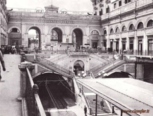 L’edificio costruito aveva un colonnato di granito rosa ed il fronte neo-classico recante un famoso orologio che come certamente sapete all’epoca regolavano il traffico dei treni stessi i cui binari si addentravano tra le due ali del fabbricato spingendosi fin quasi nella piazza .