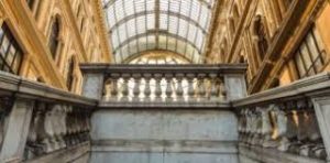 CURIOSITA’: La costruzione del Salone Margherita coincise quindi come avete certamente capito con un momento di diffuso risanamento urbano iniziato nel 1885 dall’ingegnere Emmanuele Rocco, proseguito da Antonio Curri e poi ampliato da Ernesto di Mauro: i tre “Haussmann” napoletani. Molti edifici furono abbattuti e alcune strade ampliate per lasciare spazio a negozi, caffè e alla neonata Galleria Umberto I, inaugurata nel 1890 con affaccio principale su Via Toledo. Due imprenditori locali, i fratelli Marino, ebbero la geniale intuizione di realizzare nei sotterranei un locale notturno sul modello del café chantant parigino, una vera novità nel panorama dello svago nazionale. Si trattava di una sala rotonda sormontata da una grande cupola centrale, con un palcoscenico mobile, due ordini di palchi e una platea in grado di ospitare fino a ottocento ospiti. Così come la Galleria portava il nome del Re d’Italia, il Salone venne intitolato all’amata Regina di casa Savoia, la stessa a cui i napoletani dedicarono anche la celebre pizza.
